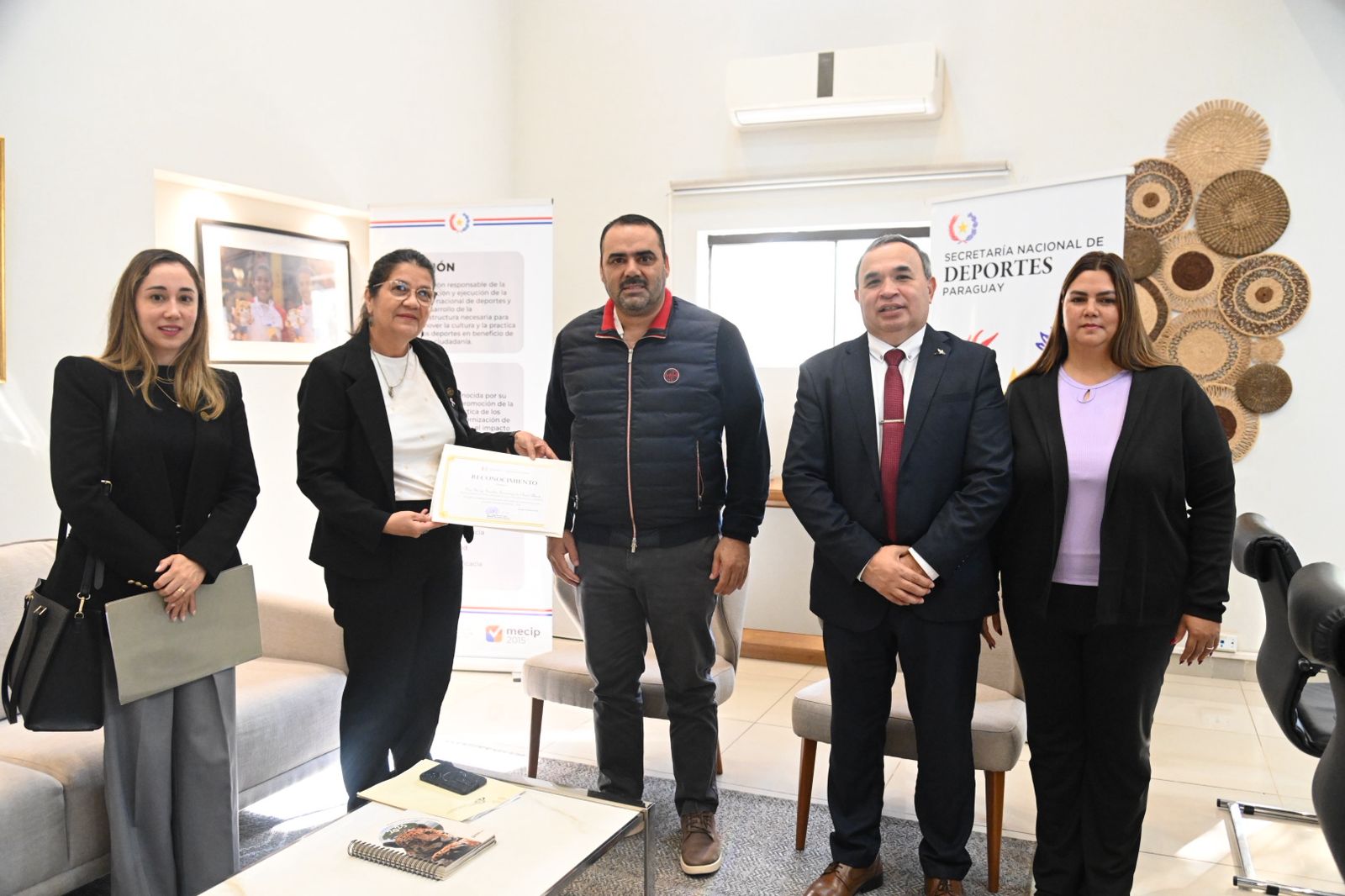 En el marco de las acciones de implementación del MECIP en la Secretaría Nacional de Deportes, la Casa del Deporte Nacional recibió la visita de representantes de la Contraloría General de la República. En una amena mesa de trabajo, el Ministro César Ramírez, expuso los trabajos de la cartera deportiva ante la Sra. Gladys Fernández, Directora General de Control Gubernamental de la Contraloría.