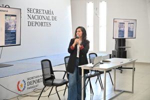 La referente de la UAL en la SND, Lic. Lorena Flores, expuso ante la plenaria las diversas acciones desarrolladas por la cartera deportiva para el fortalecimiento del uso del guaraní en la institución. Flores inició destacando la relevancia de estas instancias señalando que “es importante el trabajo de las Unidades de Asuntos Lingüísticos en la función pública para seguir fortaleciendo la buena atención al usuario, en el idioma que necesite”.